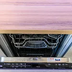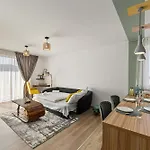 - ❓Există o bucătărie disponibilă la apartamentul pentru oaspeți?Da, apartamentul dotată cu o bucătărie complet utilată și oferă cuptor.